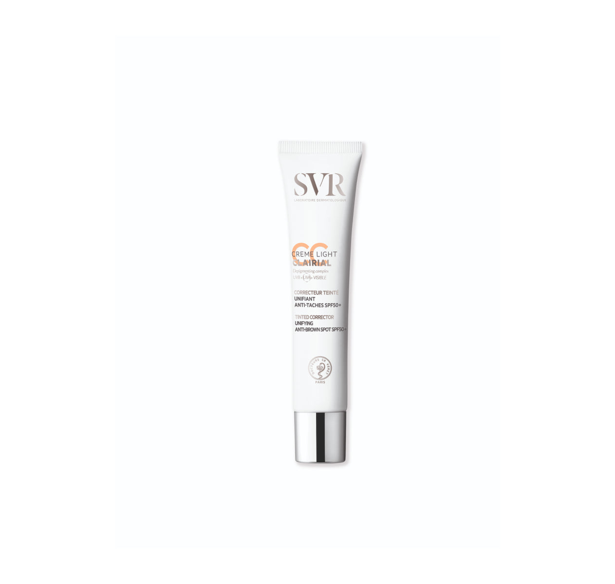 CLAIRIAL Крем SPF50+ е крем 2-в-1, който също може да се използва за защита против кафяви петна. Той е подходящ за всички видове чувствителна кожа, като съдържа много висока концентрация на ексклузивен депигментиращ комплекс за интензивна корекция и превантивно действие за избягване на повторната появява на кафяви петна по кожата.